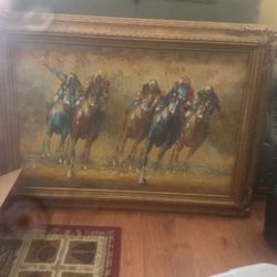 Antique Large Horse Race Painting Signed And Framed 44X32 In$225Tampa, FL