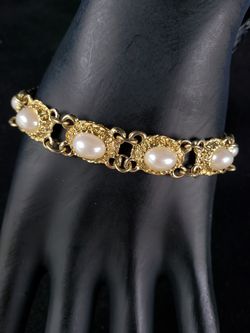 $8. Beautiful gold tone faux pearl link bracelet. 7 1/4 inch. 3/8 inch wide.$8Indian Shores, FL