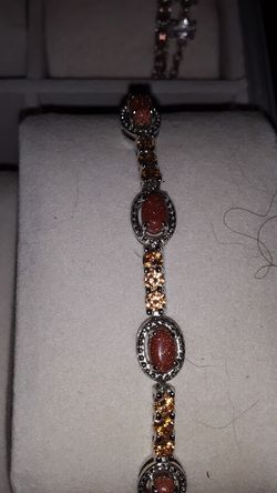 Goldstone and Citrine bracelet set in Sterling silver with adjustable slide chain.$75TWN N CNTRY, FL