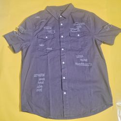Men's XL Grey Distressed Cotton Short Sleeve Casual Button-Up Shirt$15Ruskin, FL