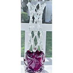 Vintage Murano Style Cranberry Art Glass Vase Pulled Lattice 14" Tall Sculptural$165Lutz, FL