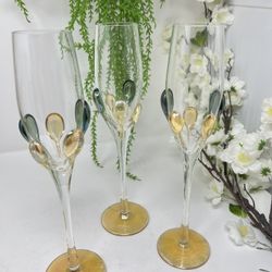 Signed Jon Art Studio Art Glass Champagne Flutes 11” – Set of 3 $165Pinellas Park, FL