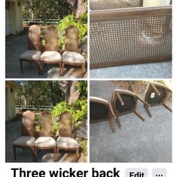 Three Wooden Dinning Chairs With 2 Broken Wicker On The Back $4Largo, FL