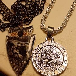 Arrowhead Pendant And Saint Christopher Medal On Chains In Perfect Condition $10New Prt Rchy, FL