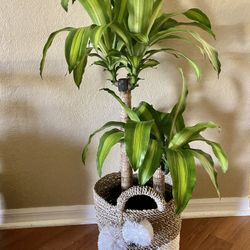 Beautiful Corn Plant In Boho Basket With Pom Pom Accent 💚$55Tampa, FL