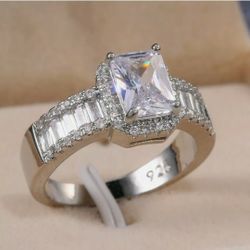 Elegant 925 Silver Rings Women Emerald Cut White Sapphire Ringt Size 9$10Largo, FL