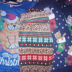 2 Christmas Cat Sweatshirts Blue XL Leopard Print Holiday Red Green Leggings XXL $20Tarpon Springs, FL