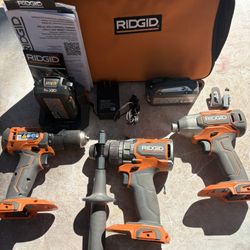 Ridgid 18V Hvy Duty (3) Drill Bundle—New/Unused Hammer + Impact Drills, Drill Driver, (2)Batts/Chrgr$140Largo, FL