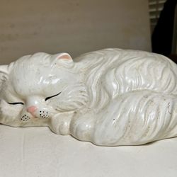 Beautiful Vintage 1970 Ceramic Long Haired Sleeping White Cat Hand Painted Nice! $15Holiday, FL