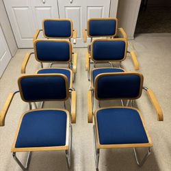 Dining Conference Table 6 Chairs Wood and Blue Fabric$100Oakland Park, FL