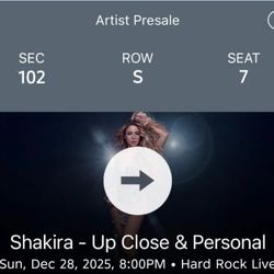 Shakira Lunes 29 DICIEMBRE $1Hialeah, FL