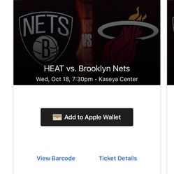 Miami Heats v Brooklyn Nets $125Hollywood, FL