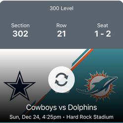 Cowboys At Miami Dolphins Tickets $1,300Pembroke Pines, FL