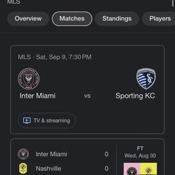 Inter Miami Vs Sporting KC 9/9$150Hialeah, FL