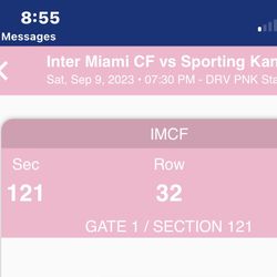 2 Inter Miami Tickets 9/9 Vs Kc Sporting $200Hialeah, FL