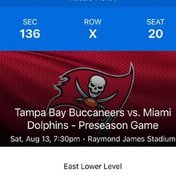 Dolphins Buc Pepresason Game 2 Tickets Seats 19 and 20$200Hollywood, FL