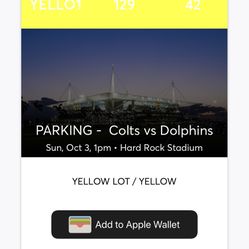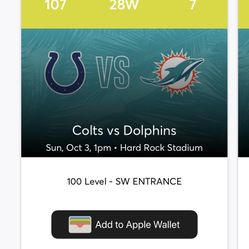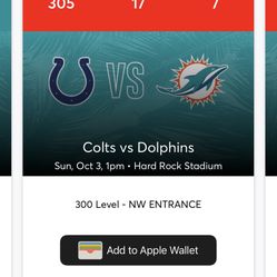 Colts @ Dolphins Oct 3 Tickets$120Pembroke Pines, FL
