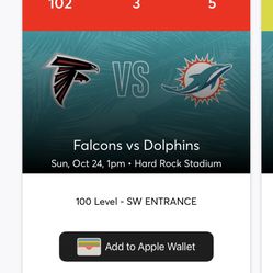 2 Miami Dolphins Vs Falcons Single Tickets For Sale $80Miami, FL