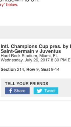 Tickets juventud vs Paris sain Germaine$120Weston, FL