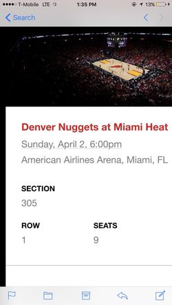 Miami heat tickets April 2 2017 vs nuggets$80Hialeah, FL