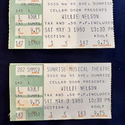 Willie Nelson Tickets 1980$150Pompano Beach, FL
