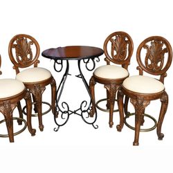Bistro Table Metal Base with Wood Top, 40"h x 33"dia (Pier One) AND 4 Swivel Barstools with Brass Colored Footrests$250Fort Lauderdale, FL