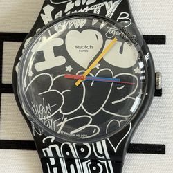 Swatch LOVE WALL SUOB125 Black Graffiti Watch 41mm Quartz - New in Box$90Oakland Park, FL