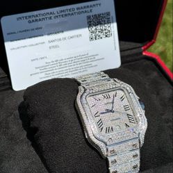 Cartier Santos Large 40mm Roman Pave Dial Bussdown iced out box and card WSSA0018$9,900Boca Raton, FL