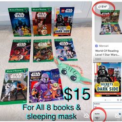 $15 For All Disney Star Wars World of reading level 1,Lego book,8 total & sleep mask like new all $15Boca Raton, FL