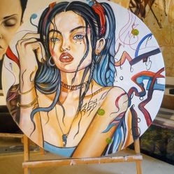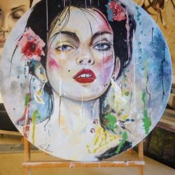 "Melissa" Oil And Acrylic On MDF, Round Original Painting, $200Hollywood, FL