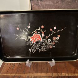Vintage Japanese Red Shimmer Lacquer Serving Tray | Floral Design | 1970s$15Boca Raton, FL