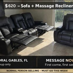 Black Reclining Sofa + Massage Recliner | Very Comfortable | Must Go for new space$620Miami, FL