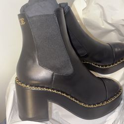 Brand New CHANEL Black Leather Chelsea Boots with Gold Chain Trim$1,200Fort Lauderdale, FL