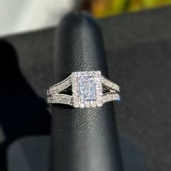 Jewelry 10k solid white gold natural diamonds princes 1.00CTW composite rectangle frame ring size 5.75$750Pompano Beach, FL