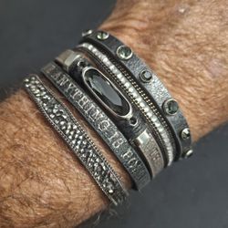 Genuine Lambskin Leather, Black Diamond Glass Crystals, Clear Crystals, Empowering Messages & Sprinkle Crystals W/Magnetic Clasp 7.5"$10Fort Lauderdale, FL