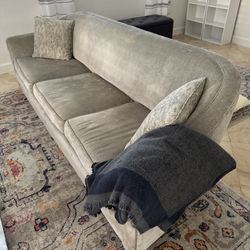 Recover? 8-foot brushed velvet couch in neutral gray color. Excellent construction but damage on left corner. East Boca In Library Commons. $25Boca Raton, FL