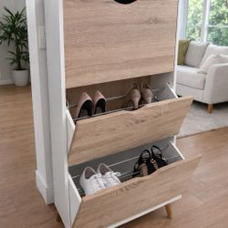 Modern 3-Drawer Shoe Cabinet – White & Oak Finish | Slim Storage Organizer $80Miami, FL