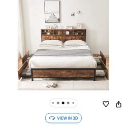 Full Size Bed Frame with Storage Headboard & Drawers - No Box Spring Needed$250Oakland Park, FL