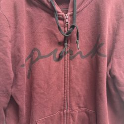 PINK Victoria's Secret Women's Burgundy Full Zip Hoodie Fleece Logo M$9Fort Lauderdale, FL