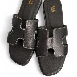 Black leather open toe sandals with white stitching Size 7 Runs larger $16Miami, FL