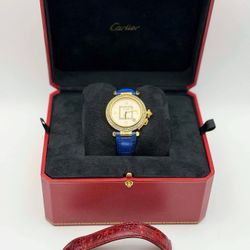 Pasha de Cartier 18k yellow gold Automatic 35mm Blue & Red Leather Band 1035 Diamond Bezel White Roman Dial Watch Box Appraisal$12,500Boca Raton, FL
