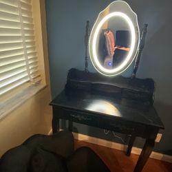 Black Make-up Table/Vanity Set-Up/Light-up Mirror With Rolling Black Plush Chair - Weston 33326$175Fort Lauderdale, FL