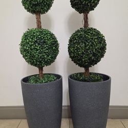 *** REDUCED *** PAIR of 3ft Faux Boxwood Topiaries in 21in Gray Resin Planters @ Lasting Creations$130Oakland Park, FL