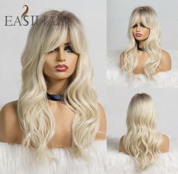 Synthetic and human Ombre Mixed Blonde Wigs with Bangs Long Natural Wave Hair$55Lehigh Acres, FL