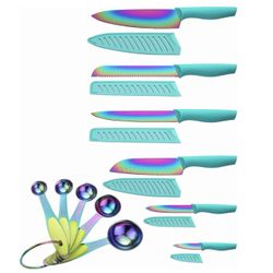 Knife Set With Teal Handles Blade Guards and Measuring Spoons$25Fort Myers, FL