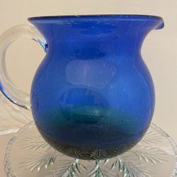 Pitcher Hand blown Art Glass Cobalt Blue 10β X 9β $41Cape Coral, FL