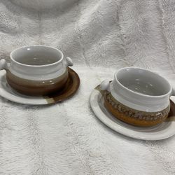 Set Of Two Vintage Stoneware Pottery Chili/ Soup Bowls With Saucers $25Lehigh Acres, FL
