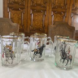 Set Of Six Beautiful Vintage Mounted Police Glass Mugs With Gold Rims $60Lehigh Acres, FL