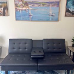 Black Faux Leather Futon Sofa – Built-In USB Charging & Cup Holders$180Cape Coral, FL