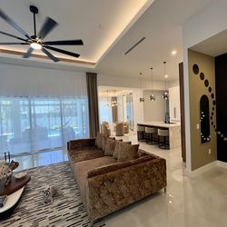 Good Opportunity. Modern Contemporary Velvet Gold extended extra size sofa with 6 pillow same material and two extra white pillows. 118 W x 59 D x 30$500Fort Myers, FL